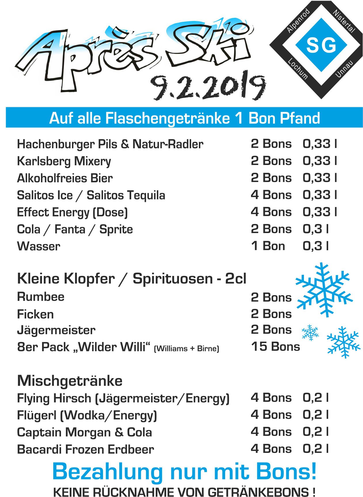 - Getränkekarte Après Ski-Party 2019